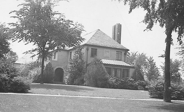 There are many fine examples of English Cottage style homes in Grosse Pointe from this era including 34 Beverly (built in 1913 – pictured below), 70 Moran (built in 1919, demolished in 1957), 25 Roslyn (built in 1922) and 1175 Three Mile (built in 1925). Several typical characteristics of this approach are an asymmetric configuration, a steeply pitched roof, large flat chimneys, arrangements of tall narrow windows, multiple smaller windows (in bands), stucco on the front façade, and in some instances a tile roof. The English Cottage style is a particularly interesting architectural form – many talented architects created projects in this approach and while there are elements that are instantly recognizable, in many cases the design was left to the architect’s own interpretation of this approach.