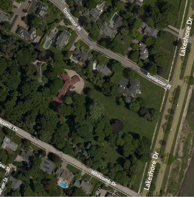 Mrs. Whitcomb passed on March 28, 1953. At the time the Whitcombe estate was valued at upward of $8,000,000 (around $97m today). Upon her death her entire collection of more than 600 orchids was left to the Belle Isle Conservatory Source: Detroit Free Press (April 1953). Six months later, on October 12 Mr. Whitcomb died.It appears after their passing, the Whitcomb’s son, James, demolished the home. James Whitcomb was a major arts patron in Detroit and retired treasurer of the Detroit News. Part of his parent’s estate was sub divided, creating Whitcomb Road, while on the remaining land James Whitcomb built a new residence (still addressed 383 Lakeshore) – a stunning 8,866 sq ft Spanish style residence completed in 1957. Very little is known about the home, including the architect who designed it, but it is set on 10 acres - one of the largest private estates in the Pointes - and features beautiful trees and gardens.James Whitcomb lived there with his wife, Vera, until his death on September 24, 1963. It’s not clear how long Mrs. Whitcomb continued to reside at the house (she passed in 1972) before it was purchased by the Cracchiolo family who still own it today. Image courtesy of GoogleEarth.com