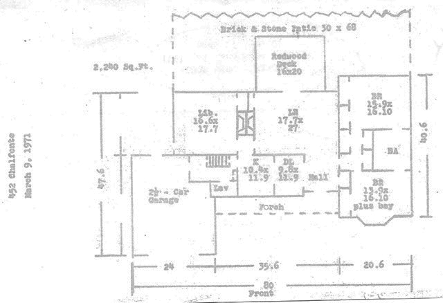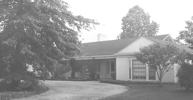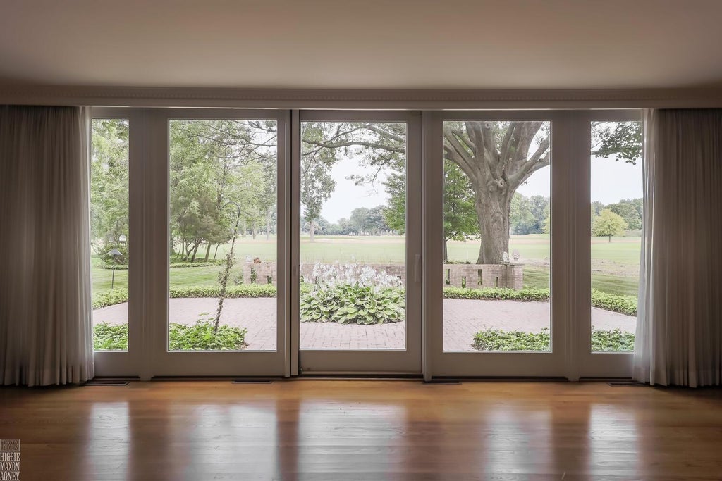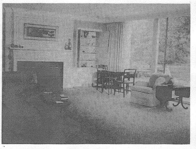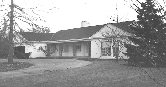 452 Chalfonte is a 2,160 sq ft Ranch style home with stunning vistas of the 5th fairway at the prestigious Country Club of Detroit golf course. Completed in 1952, it is a brick-built home, painted white. Our files note that it was custom built for the original owner, Russell Hunter, however, he never occupied the home. The interior was finished to a particularly high standard with random width oak floors, flagstone in the hallway, rich wood paneling, and a cork paneled wall in the library. Arguably the most stunning room of the house was the 26’ x 17’ sq ft living room, with a fireplace, paper-grass wallpaper (as per a listing in 1969) along with a Thermopane door that provides a perfect view of the golf course. The spectacular panorama is also visible from the library and master bedroom. The rear of the property once had a 30’ x 68’ sq ft patio that was designed by Meathe & Kessler (it is possible the patio was added several years after the house was built). The black and white photos below are from the broker’s open house on September 24, 1971.