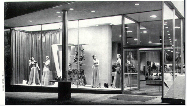 Schmidt was also responsible for several other commercial buildings in Grosse Pointe including the Chet Sampson Travel Bureau on The Hill, along with the D. J. Healy and the S. Stein & Co. shops in the Village. In Detroit he worked on numerous projects including a shop for Hiller’s, a sales room for Riley Motor Sales, plus designs for a proposed regional shopping center, and a factory building in the City. Outside of Michigan, in West Virginia the firm worked on alterations for existing department store buildings for the Style Shop, Broida’s, along with a building for The Preis Store in Ohio. Images courtesy of: Michigan Society of Architects magazine (April 1957).