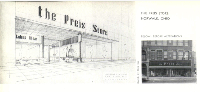 It is apparent Arthur Schmidt was particularly successful during the mid-20th century, with some of his work documented by local architectural historians. The firm primarily created commercial buildings in Metro Detroit, Flint and Ann Arbor that centered on a Mid-Century Modern approach. While many of the projects were in Michigan, Arthur O. A. Schmidt & Associates, were hired to work on commissions in other states. Some of the firms most prestigious projects centered on designing department stores for Jacobson’s, a chain based in Jackson, Michigan, who focused on apparel, fine jewelry and home furnishings. Some of the stores Schmidt designed for the firm were in Birmingham, Saginaw, Grand Rapids, Ann Arbor, along with the Jacobson’s Home Decorative Shop in Grosse Pointe. Images courtesy of: Michigan Society of Architects magazine (April 1957).