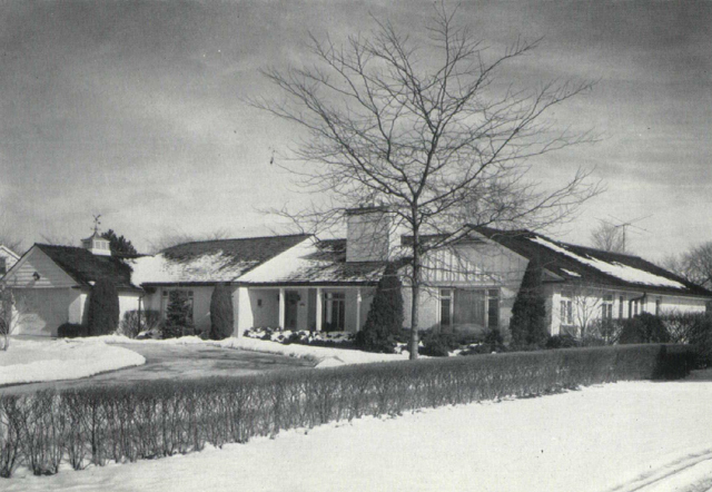 This fine Mid-Century Modern Ranch was completed in 1948 for Hugh Gorey. The house was featured in Michigan Society of Architects magazine (April 1957). Hugh Gorey was owner of the Gorey Buick Company, served as chairman of the Detroit Auto Show in 1955, and was president of the Buick Dealers in the Detroit Area.