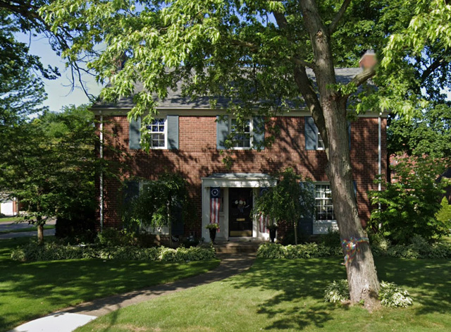 Robert A. Calder designed this classic center entrance Colonial brick home. Very little is known about the career of Robert A. Calder, however we do know he multiple residences throughout the Grosse Pointe communities. Image courtesy of: GoogleEarth.