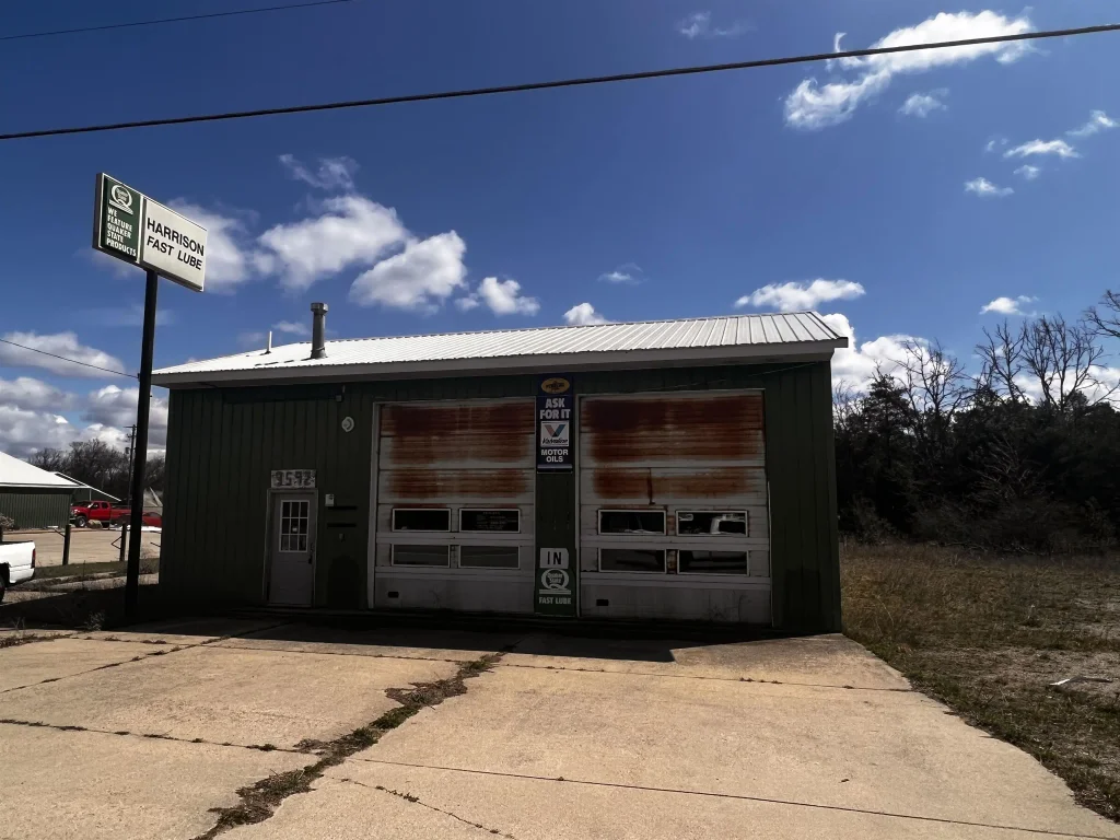 3.95 acres of commercial land just north of Harrison city limits on Business loop of 127 (aka N Clare Ave). 1200 sf building with 14ft ceilings, four 10x12 doors, 2 oil change bays, an office, storage rooms and a bathroom.