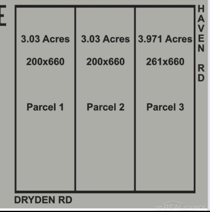 Parcel 1 Wonderful Dryden Twp Lot. 3.03 acre's of suitable land for your new homestead. Survey Available. Well and Septic Needed. Paved Road, Close to surrounding Communities, Shopping and Interstate. Two Additional Lots available(3.03 acres and 3.97 acres)