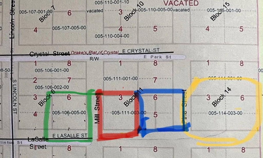 Great Location Crystal speedway from your back door 1.59 acres Property with Fully Equipped Pole Barn Near Crystal Motor Speedway Located just minutes from Crystal Motor Speedway and Crystal Township Park, this unique property offers both convenience and functionality. The 36x46 pole barn is designed to accommodate a variety of needs, making it ideal for personal projects or business ventures. Pole Barn Features: High Ceilings: 12 ft. clearance, perfect for large equipment or expansive projects. Dual Roller Doors: 16x12 ft. door for oversized access. 9x12 ft. door for additional versatility. Electrical Setup: Fully wired with capacity for welding equipment. Finished Office Space: Includes a dedicated service entrance, providing a private and professional workspace. Concrete Floors: Durable and low maintenance. Enclosed Lean-To: 9x20 ft. fully enclosed space for added storage. Equipped with a 7x7 ft. roller door for secure access. Situated on a .50-acre lot, this property offers ample space for various activities. Its close proximity to Crystal Motor Speedway, known for auto racing every Saturday night Michigan Official Tourism Site and Crystal Township Park makes it an attractive location for motorsport enthusiasts and those seeking recreational opportunities. block 11 lot 5,6 -tax id 005-111-003-00 block 14 lot 3,4,5 and 6 - tax id 005-114-003-00