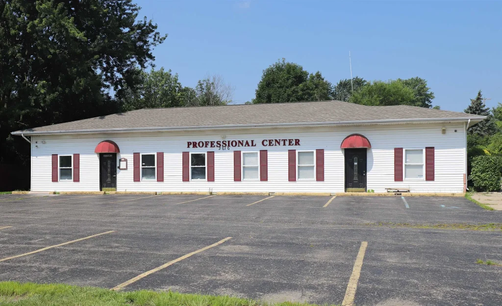 Spacious office investment opportunity. Immaculate and updated (1998) Unit B is available, offering 847 sq ft plus a partial basement for storage. Large corner lot with on site parking lot. Formerly non-profit, insurance and attorney offices. 3 offices, 2 bathrooms, and reception area. Great corner street signage at Dye/Lennon roads. Building for sale at $294,900. 847 sq ft for lease at $12 sq ft triple net. Handicap accessible. Immediate occupancy for Unit B.