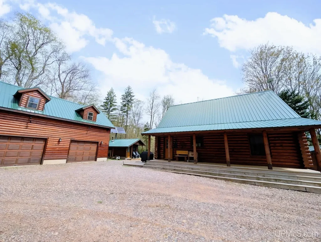**Stunning Log Home Retreat on 80 Acres in Michigan's Upper Peninsula** Escape to your own private paradise with this exceptional 80-acre log home, nestled in the heart of the pristine mature forest of Michigan's Upper Peninsula. This remarkable property features a serene private pond and clear creek access, offering a tranquil setting for nature lovers and outdoor enthusiasts alike. The main lodge boasts three spacious bedrooms, comfortably accommodating up to 8 guests, making it an ideal getaway for family gatherings or a peaceful retreat with friends. The charming garage annex provides additional sleeping space for 6 more guests upstairs, ensuring that everyone has a cozy spot to unwind after a day of adventure. This fully furnished lodge is designed for off-grid living, equipped with solar and a brand new generator, and features low gas heating for those chilly Michigan nights. A separate sauna with a bathroom adds to the allure, providing the perfect place to relax and rejuvenate after exploring the surrounding wilderness. This property is completely turn-key and ready for its new owners to continue its legacy as a successful vacation rental. With the option to inherit future bookings, you can seamlessly step into a lucrative investment opportunity or simply enjoy it as your own private retreat. Don’t miss your chance to own this slice of heaven in the Upper Peninsula. Whether you're seeking a peaceful escape or a profitable rental, this log home retreat offers it all! Schedule your private showing today and experience the magic of this extraordinary property for yourself.