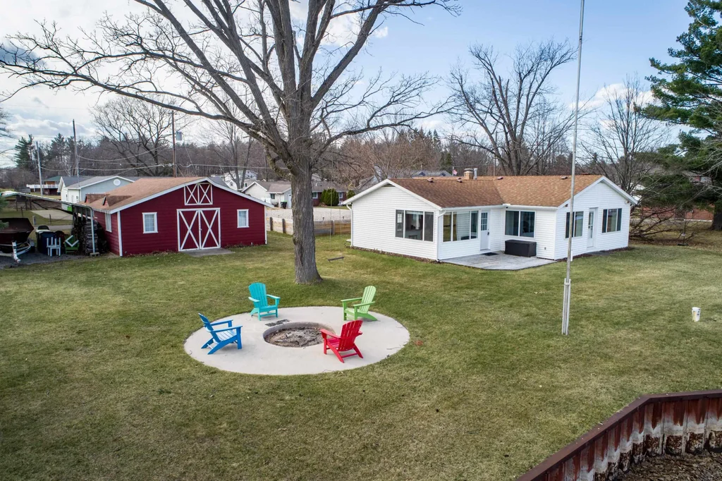 Experience lakefront living on Oakridge Drive! This spectacular double lot is located in a highly desirable neighborhood on the west side of Wixom Lake, offering a peaceful setting & breathtaking views of the soon-to-be-restored lake. Step inside to discover an impeccably maintained home with extensive updates throughout. The new custom kitchen features beautiful cabinetry, while the dining area showcases a full wall of windows, flooding the space with natural light & capturing incredible lake views. The spacious living room boasts vaulted ceilings & a cozy gas log fireplace, perfect for unwinding after a day on the water. Recent updates include new windows, updated kitchen & bathrooms, new flooring, doors, ceiling fans, new siding with added insulation, roof, gutters, fascia, furnace, central air, & hot water heater—all within the past 5 years. Plus, enjoy the peace of mind of a new well & septic system installed in 2018. The property truly shines outdoors with a steel seawall, sandy beach area, powered & covered boat hoist, & ample storage—a 32x26 garage, 20x20 carport, large storage shed, & convenient kayak rack. Whether you're seeking a full-time residence or vacation retreat, this property is an absolute gem. Don't miss your chance to own a slice of Wixom Lake paradise—schedule your private tour today!!