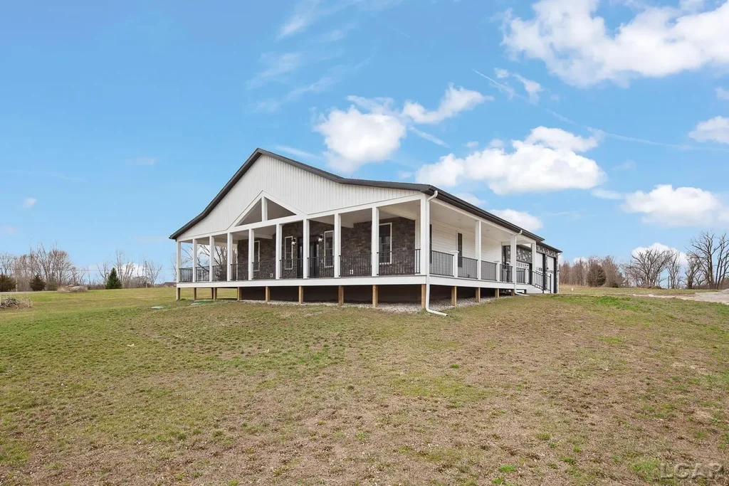 Barndominium... has Loch Erin Association Access and Acreage. No worries of where to park your Boat, Motorhome, Camper, Cars or a place for a basketball game. Heated Garage with a Bonus Room above plus a two car garage...all attached. Total of 4.75 Acres + - The house is fabulous...with its soaring ceiling in the Living area. Great kitchen with Island, Undercounter lights, Quartz counters. Pantry and Samsung Appliances. Primary Suite with large walk-in closet, generous bath w/walk-in & shower, 87" soaking tub & double sinks with Quartz Counters. 3 Additional bedrooms on the main level and 2 Full baths w/tub/showers, vanities w/Quartz. Main level Laundry & Entry from garage. Lower level has a Great Room to Entertain everyone. Multiple large screens for game days or movies. 2 additional bedrooms with egress windows and the 4th full bath! The wrap around porch is available to relax on and watch nature and maybe enjoy a rocking chair and a conversation. The home has something for the whole family to enjoy and will be a magnet for entertaining! Come hang out and read a book or have a conversation or just quiet time. ENJOY the experience...
