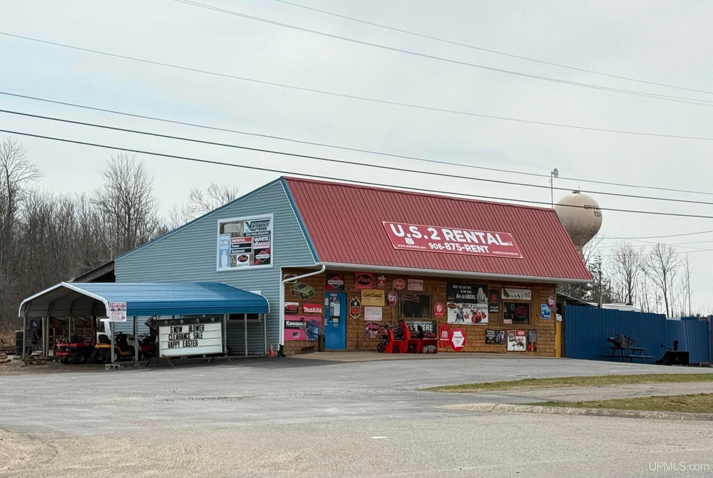 Location, Location, Location! Establish your business here! Sitting on 1.84 acres with 250' of frontage on busy US Highway 2. The main shop is 30x50 complimented by two outbuildings, 24x32 and 24x24, both with concrete floors. Property also features a blacktop parking lot, an outdoor woodstove for heat, and both a 100 amp & 200 amp electric panel. As per the sellers there is also 3 Phase power that is currently not in use. The parcel is well suited for many different business opportunities.. Lots of possibilities. Please Note: NO inventory or equipment included in sale. REAL ESTATE ONLY. Carports and propane station also NOT included. There are two additional 1.6+ acre parcels to the West, both with highway frontage, that are available for sale separately at $29,500 each or buy both for $50,000. Note: The property taxes are estimated pending legal description verification.