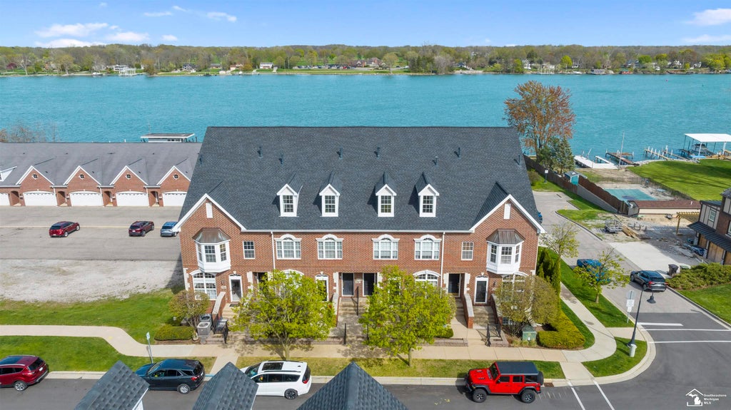 Highly sought after Riverfront living! This gorgeous condo offers a view in every room! Enjoy early mornings on the balcony and cozy evenings with its open concept living area with fireplace. Perfect for an active lifestyle with downtown Trenton living, walking distance from Elizabeth Park, restaurants, shopping and entertainment. Bonus TWO Docks deeded to this property. Private outdoor entertaining area with fire pit. Great Lakes living at its finest. Freshley painted and carpet 2025, and newer A/C, furnace, water heater, hardwood floors and roof. Trenton School district.