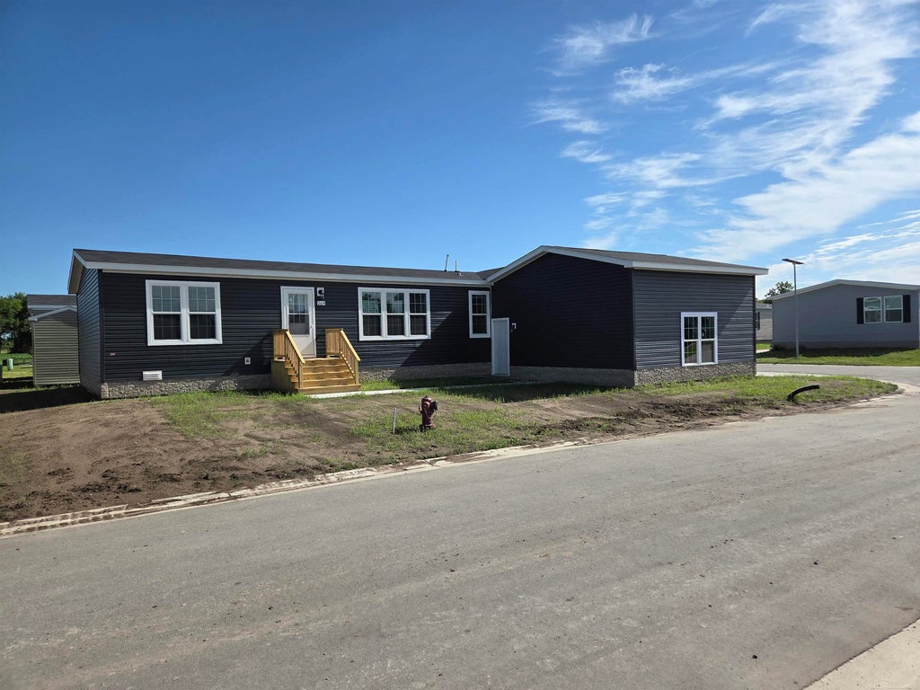 New 1,493 Square Foot Home. Beautiful Kitchen with Huge Island open to Living Room and Dining Room, Master Bedroom with private bath, two additional bedrooms with shared bath, laundry, large open kitchen, attached 2 car garage. Central Air. Nice corner lot. Site fee is $459/mo. but no HOA or real estate taxes. Note that there is 6% sales tax and a $90 title fee on manufactured homes. However there are no title insurance fees, closing fees, recording fees, survey fees, tax escrows (or real estate taxes), PMI, application fees, legal fees or HOA fees.
