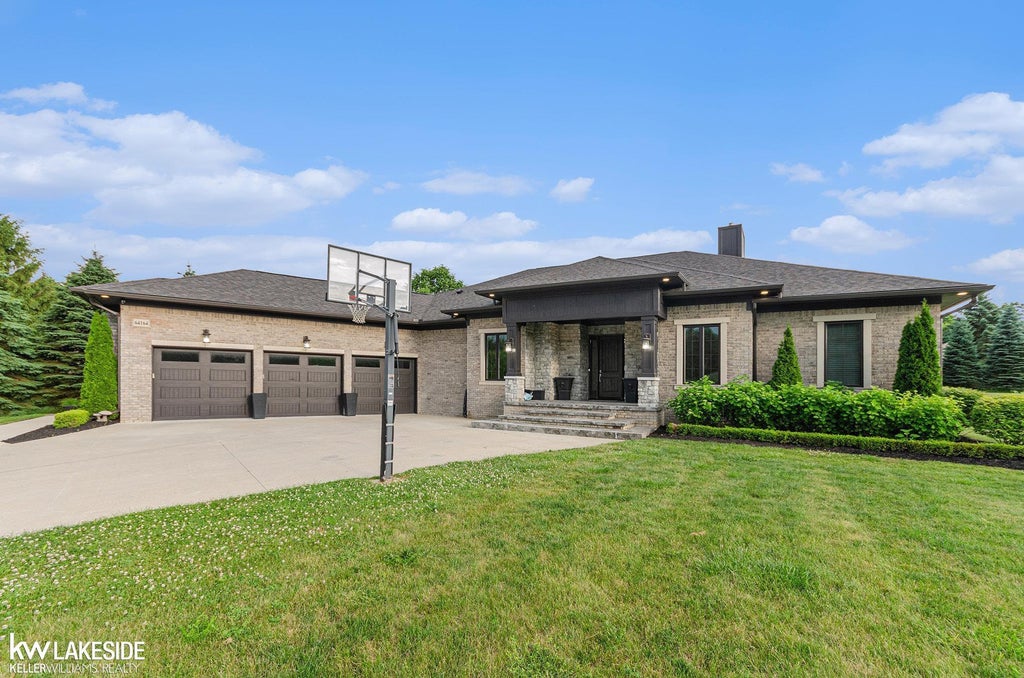 OPEN HOUSE 09/07/25 2pm-4-pm***Luxury meets comfort ranch home offering over 7,300 sq ft of beautifully finished living space! This 4-bedroom, 4.5-bathroom residence boasts soaring 12-foot ceilings, 8-foot doors, and exquisite finishes throughout. The gourmet kitchen features quartz countertops and flows effortlessly into open-concept living areas adorned with four fireplaces, perfect for both cozy nights and grand entertaining. Step outside to your private backyard oasis—complete with an inground pool, custom cabana, gazebo with built-in BBQ station, outdoor TV, and a personal golf putting green—all fully fenced for added privacy. The 3-car heated garage adds comfort and convenience, while the fully finished basement provides exceptional bonus space. Meticulously maintained and truly move-in ready, this home is ideal for both everyday living and entertaining. Nestled near the beautiful Orchards Golf Course and located in the highly desirable Romeo Schools. This is an amazing opportunity to have your dream home!