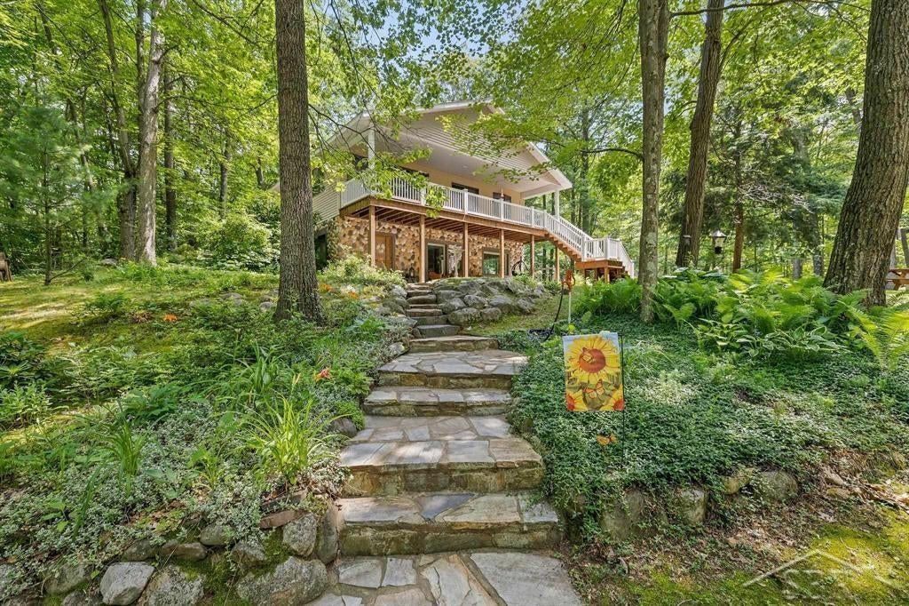 Nestled in the woods of this 20 acres, this hidden gem offers unmatched privacy that sets the tone for peaceful living. Surrounded by rolling hills and an abundance of wildlife such as deer, birds, and more. This property is a nature lover’s dream. Inside, you'll find a warm and inviting main level with a pellet stove, while the walk-out lower level features a wood stove, two walls of floor to ceiling windows, and its own full kitchen, perfect as a prep space for your gathering. New appliances and abundant windows throughout elevate both function and charm. The spacious primary bedroom includes an attached full bath for your comfort. Relax and unwind on the amazing covered deck ideal for enjoying the peaceful views in any season. A truly special retreat offering space, seclusion, and scenic beauty.