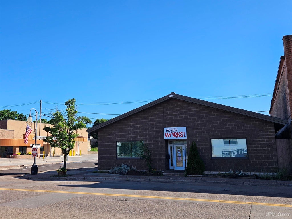 Newer construction commercial building in the middle of downtown Ontonagon. this 5,000 square foot building has natural gas heat, central air conditioning, village water/sewer, and is accessible. it has 2 separated office spaces, one has a large banquet room with an open floor and tall ceilings, perfect for renting out for large parties or meetings. The "front office" is currently being leased by Michigan Works, it has parking on Spar St. with a wheelchair ramp. Use your imagination and make it your own.