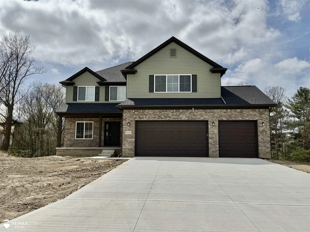 The popular Amherst Plus two-story floor plan. This 2,500 sq ft new build features an open main level with a great room and gas fireplace, informal dining, and a spacious kitchen with soft-close cabinetry, oversized island, white subway tile backsplash, walk-in pantry, and granite throughout. A flex room and half bath on the first floor add function and flexibility. Upstairs offers four bedrooms, a full bath, second-floor laundry, and a primary suite with a walk-in closet that’s the talk of the town. The primary bath boasts double sinks, a stand-alone tile shower, and a soaker tub. A full basement and three-car attached garage round out this impressive home. *Photos are of a previous model. Colors and selections vary.