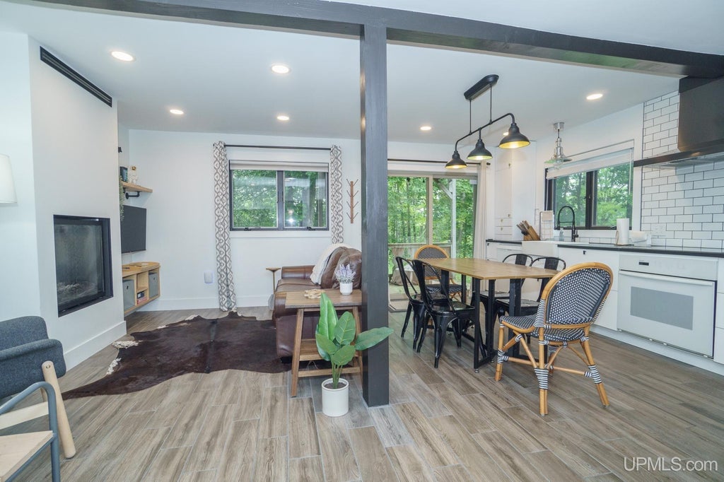 Experience the very best of Snow River’s Jackson Creek Resort and one of the top ski destinations in the Midwest! This luxury, fully renovated condo underwent a complete “studs-up” transformation in 2024—no detail overlooked. Upgrades include heated tile floors, a gas log fireplace, all-new electrical and plumbing, fresh walls throughout, and a chef’s kitchen with a high-end range and hood. The open-concept great room offers a stylish living area, convenient laundry closet with stackable washer/dryer hookups, and a cozy sleeping nook with built-in bunk beds. The luxurious bathroom features premium fixtures, while the richly appointed bedroom boasts innovative behind-the-wall storage. Recent exterior updates include Smartboard siding for lasting curb appeal. Whether it’s the thrill of ski season or the charm of the other three seasons, this turnkey mountain retreat is ready for you to enjoy year-round.