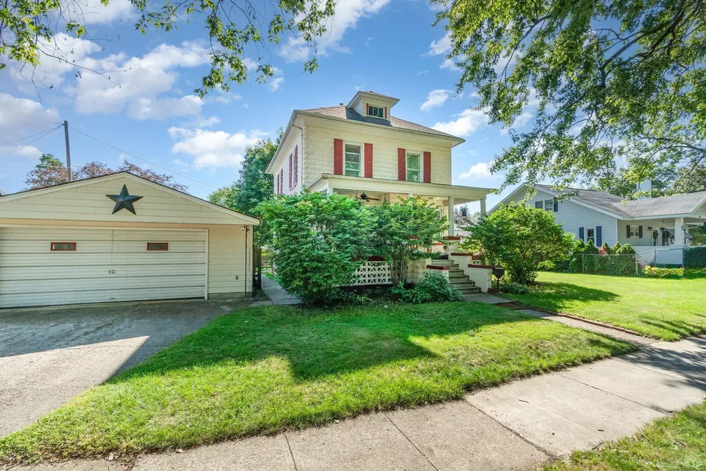 Lovely traditional style home on Bay City's west side featuring 3 spacious bedrooms and 1.5 baths! Step inside to the spacious living room and dining area, which is ideal for entertaining. The formal dining space has plenty of room for hosting dinner, a seating nook, and built in buffet for serving. Most of the home showcases original hardwood floors that have been refinished and tall ceilings creating a grand atmosphere. The full basement is ideal for an extra living space. Updates include fresh paint, new hot water heater, and updated forced air furnace and central air. Outside you will find a charming covered porch, fenced in double lot, large 2 car garage, and 2 driveways for extra parking!