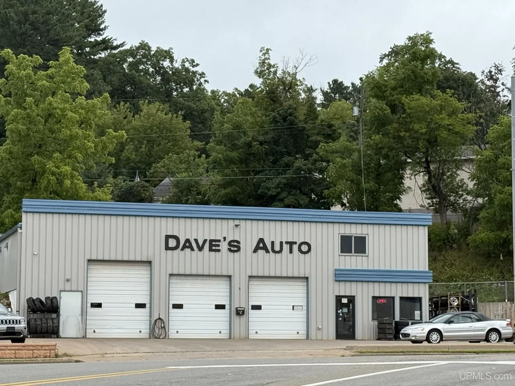 Turnkey Auto Service Facility & Business Opportunity. Built in 2014, this modern 3,519 sq. ft auto service facility is fully equipped and move-in ready. The property includes Office space: 408 sq. ft. with public restroom. Shop area: 3,111 sq. ft. with 6 service bays. Upper-level breakroom: 408 sq. ft (With refrigerator, sink, microwave, cabinets, dishware & tv). Employee bathroom which includes shower. Loft/Storage is appx. 572 sq. ft. with reinforced floor. Additional storage 15'x20' detached storage garage with employee parking area. Building features: Radiant-heat natural gas in shop and forced air natural gas furnace in office and breakroom area. Trench drains with oil separator, Air exchanger, 3 ceiling fans, emergency & exit lighting. ADA compliant, new energy-efficient lighting (2020), security camera system. Included Equipment & Inventory: (3) Hoists, tire changing machine, tire balancer, parts washer, air compressor, A/C repair equipment, brake lathe, drill press, shop press, engine hoist, cutting torch, arc welder, wire feed welder, miscellaneous supplies, inventory and security cameras. Additional business opportunity: The sale includes an established snow removal/ salt business with 20 regular customers. Package includes a 2015 Ford F-350 regular cab pickup truck with Boss 9'2" V plow and Boss salter. Other details: Customer records from the past 12 years are organized in QuickBooks. Energy-efficient, well maintained and fully operational facility. This property offers a rare chance to acquire a modern, well equipped auto service facility with additional income opportunities from snow removal services. Perfect for an owner-operator or expanding business. Located on Highway US 2 and the busiest intersection/traffic light in Iron Mountain with guaranteed visibility for your business.
