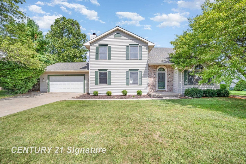 Spacious Pleasantview Estates Home. Located in the desirable Pleasantview Estates, this beautiful 4-bedroom, 2 full / 2 half bath home offers comfort, style, and room to grow. The living room features a vaulted ceiling while the family room boasts a natural fireplace—perfect for gatherings. Enjoy formal dining and a large kitchen with island and newer countertop. The primary suite includes a private en-suite bath, while the additional bedrooms are spacious and bright. The partially finished basement with egress window and half bath adds flexibility for extra living or entertainment space. Outdoor features include a deck and private, fenced backyard, plus sprinkler system for easy care. Extras like 6-panel doors, hardwood floors, and central vacuum make this home stand out. Don’t miss your chance to live in this sought-after neighborhood—schedule your showing today!