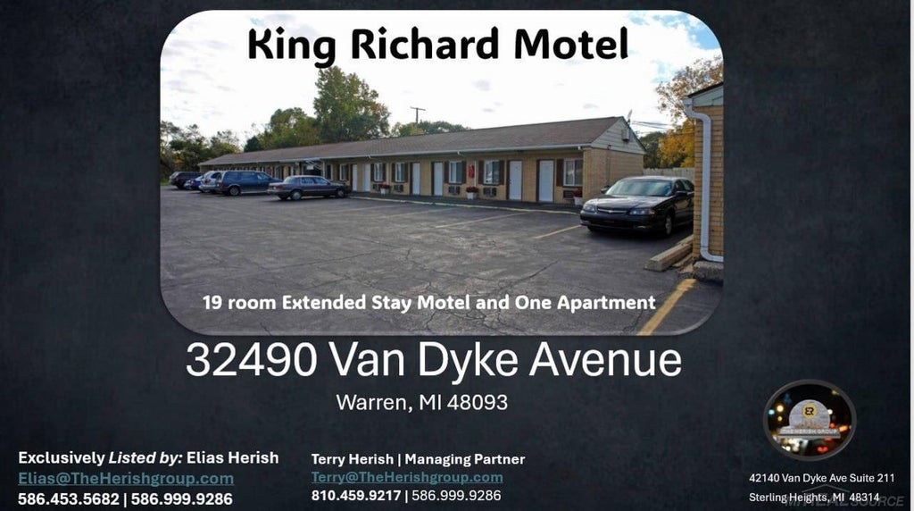 Discover a lucrative investment opportunity at the King Richard Motel! This charming 19-unit extended stay motel, along with one apartment, is strategically located on Van Dyke Ave with 229 feet of frontage, ensuring high visibility to over 52,000 passing vehicles daily. Renovated in 2024 at a cost exceeding $100,000, this property boasts modern amenities and a refreshed look. The conversion to an extended stay concept has significantly enhanced revenue prospects, with a gross income of $300,960 and a net income of $243,056, offering an exceptional cap rate of 14.3%. Convenient land contract terms are available for this C-1 zoned property, offering 0.63 acres of potential in a bustling commercial area surrounded by established national retail brands. With ample parking, room for expansion, and a prime location near major retailers, the King Richard Motel presents a remarkable investment opportunity for aspiring hospitality entrepreneurs or seasoned investors.