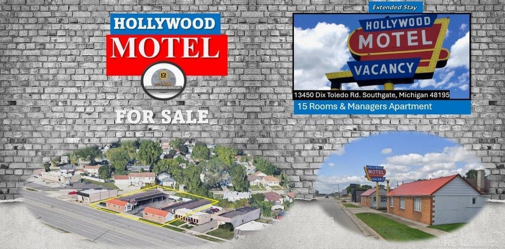 Introducing a lucrative investment opportunity at HOLLYWOOD MOTEL, located at 13450 Dix Toledo Rd. Southgate, Michigan 48195. This 15-unit extended-stay motel, along with a manager's apartment, presents a chance for a high cap rate of 20.97% and a gross income of $196,000. Renovated just last year with $32,000 in upgrades, this fully licensed property boasts modern amenities including WI-FI, cable TV, and free parking. Situated in a prime location with 120 feet of frontage on a heavily trafficked road, the motel benefits from approximately 35,000 vehicles passing by daily. With an average weekly rate of $300-$325 and a strong surrounding demographic with an average household income of $84,000 within a mile radius, this property offers a solid income stream. Don't miss this chance to own a well-positioned hospitality asset in the bustling Detroit market.
