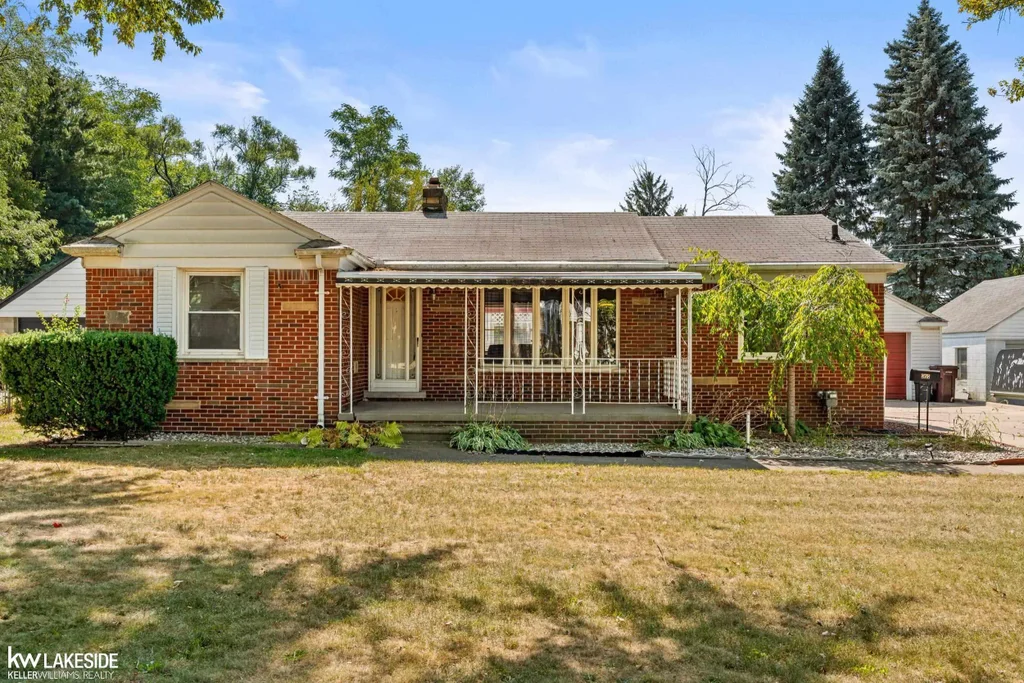 Welcome to this charming 3-bedroom, 2.5-bath ranch offering nearly 1,400 sq ft of comfortable living space on an almost half-acre lot in Center Line! Inside, you’ll find beautiful hardwood floors, a spacious and updated kitchen with abundant cabinet storage, and large bedrooms filled with natural light. The home features neutral paint colors, making it move-in ready and easy to make your own. The large unfinished basement adds incredible potential—complete with a cozy fireplace, separate storage areas, and a second full bathroom. Enjoy outdoor living on the covered front porch, a large wood deck, and a huge backyard that includes a shed, an above-ground pool, and an impressive 4.5-car tandem garage—perfect for car enthusiasts or anyone needing extra space. Located in a great area, this home offers both comfort and convenience with plenty of room to grow. Updates: Furance:2024, A/C 2024, Pool:(needs new liner) Priced below market value. Schedule your showing today!!!