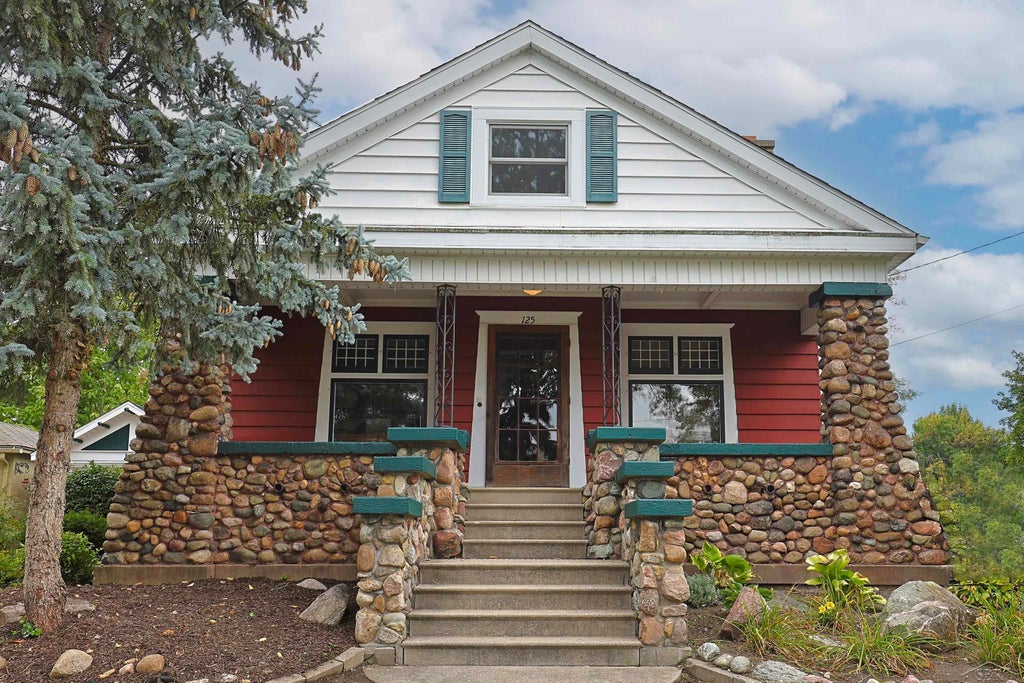 Enter yesteryear with this Fred Hollister-designed 1600 sq ft Craftsman bungalow boasting most of the original woodwork. Attention to detail is obvious before even entering the house. Generous oak door, full-length covered front porch, stone porch railing with concrete caps. The inviting living room w/ custom-designed fireplace, flanked by window seats on each side, wood beamed ceiling, hardwood flooring is open to both the formal dining room and the den/library w/ pocket doors, walls of custom shelving and cupboards. Dining room is just as astonishing with vintage wallpaper, built-in cabinet, beamed ceiling, and plate rail surround. And the new owner does not have to sacrifice functionality. Kitchen features abundant storage, including walk-in pantry and built-in cupboards. There are two primary suites - one on each floor. The upper bedroom has full bath, 3 walk-in-closets and a sitting area (which could be an office, nursery, playroom). The lower primary bedroom has two double closets and full-length powder room cabinet. An added bonus is the full, finished basement with kitchenette, rec room, storage and shower. Private, cozy backyard with brick paver patio. This beautiful Turn of the Century won't disappoint. This charmer is just a walk to Old Town Saginaw with shopping, authentic eateries, River Walk, Churches and just across the bridge are the Garber Pickleball/Tennis Courts and the YMCA!