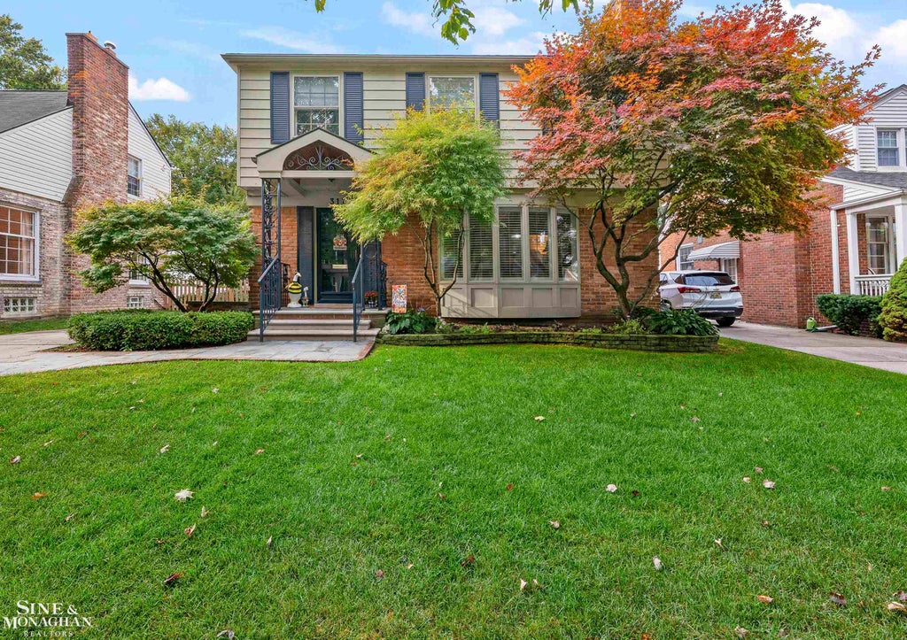 This charming Colonial in the heart of the Farms sits on an extra-wide lot and offers just under 1,900 square feet of living space. The home blends classic character with thoughtful updates, creating a warm and inviting atmosphere throughout. The main level features an updated kitchen with stainless steel appliances and plenty of cupboard space, a living room with a natural fireplace, and a huge family room with a tray ceiling, built-in bookcases, and a second fireplace. Sunlight pours through the many windows, highlighting the comfort and character of each space. A convenient half bath completes the first floor. Upstairs, there are three spacious bedrooms and an updated full bath. The finished basement was completely redone with new drywall, flooring, and an egress window, and includes a full bath, making it ideal for entertaining, a home office, or guest accommodations. Outdoors, the extra-wide lot provides a two-car garage and a brick paver patio perfect for gatherings. Recent mechanical updates include a newer furnace, air conditioner, and hot water tank, providing peace of mind and year-round comfort. Minutes from The Hill, Lake St. Clair, and award-winning Grosse Pointe schools, this home combines timeless charm with modern convenience in one of the most desirable neighborhoods in the Farms.