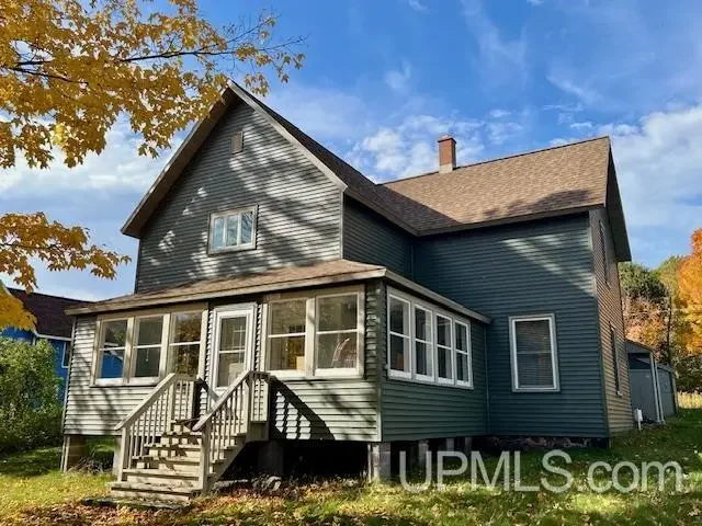 Spacious historic Calumet home with great curb appeal and a wraparound porch. Updates include roof, siding, and a 26x30 detached garage. Features a fully remodeled kitchen with quality wood cabinetry, hardwood floors, and updated windows. Main level has a parlor, dining room, and full bath. Upstairs offers four bedrooms, a second bath, and front and rear stairways. A nice blend of historic charm and practical updates near schools, parks, and downtown.