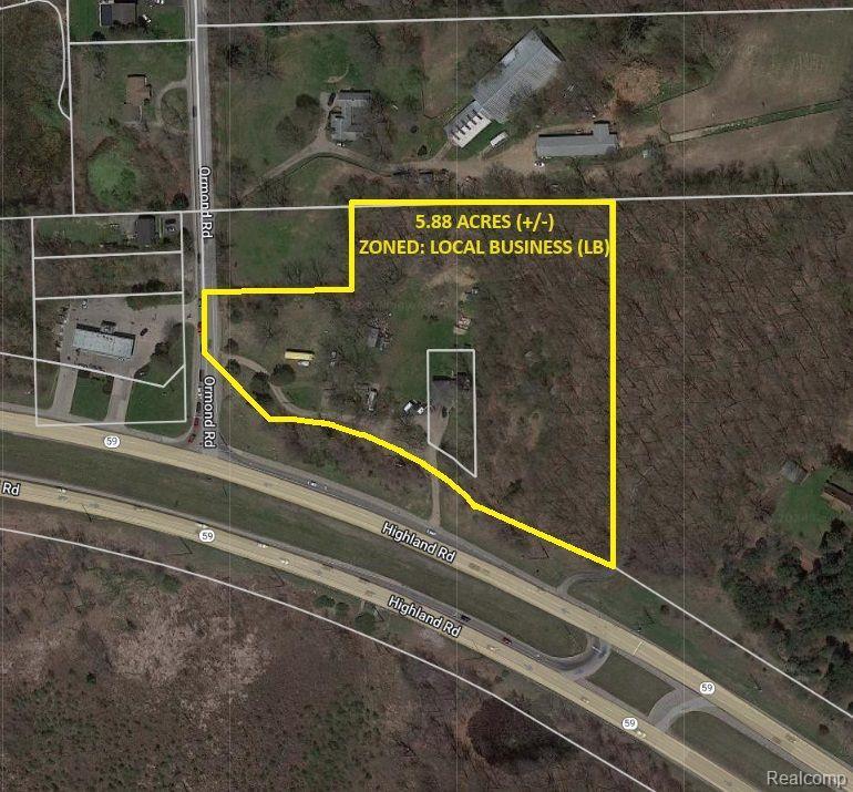 5.8(+/-) acres at the prime intersection of Ormond and Highland Rd, this property offers a highly desirable hard corner location with substantial traffic flow. Boasting excellent demographics, it is ideally suited for a fast food establishment, retail center, bank or credit union, medical office, or clinic. Possible land contract terms. Don't miss out on this exceptional opportunity!