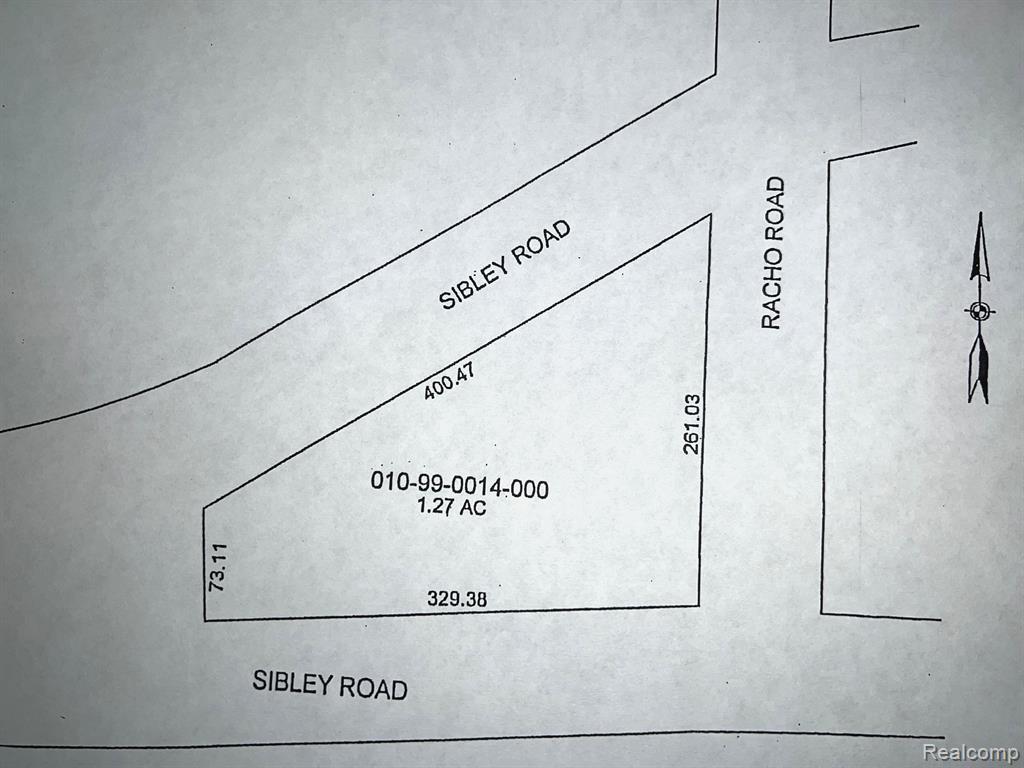 FANTASTIC LOCATION FOR THIS 1.27 ACRE VACANT COMMERCIAL PRORERTY. ZONED B-3 GENERAL BUSINESS. EXCELLENT BUSINESS OPPORTUNITY IN THIS HIGH TRAFFIC EXPOSURE AND HIGH VISIBILITY AREA WITH 400 FEET OF SIBLEY ROAD FOOTAGE. THIS PARCEL IS LOCATED NEXT TO I-75 FREEWAY AND THE EAST AND WEST CONNECTOR RAMPS FROM SIBLEY, RACHO AND DIX TOLEDO ROADS TO NORTHBOUND AND SOUTHBOUND I-75 FREEWAY. LOCATED ACROSS THE STREET FROM THIS PROPERTY ARE A BUSY GAS STATION MINI-MART, CONVENIENCE LIQUOR STORE AND A POPULAR SPORTS BAR AND GRILL WHICH DRAWS ADDITIONAL TRAFFIC TO THE IMMEDIATE AREA.