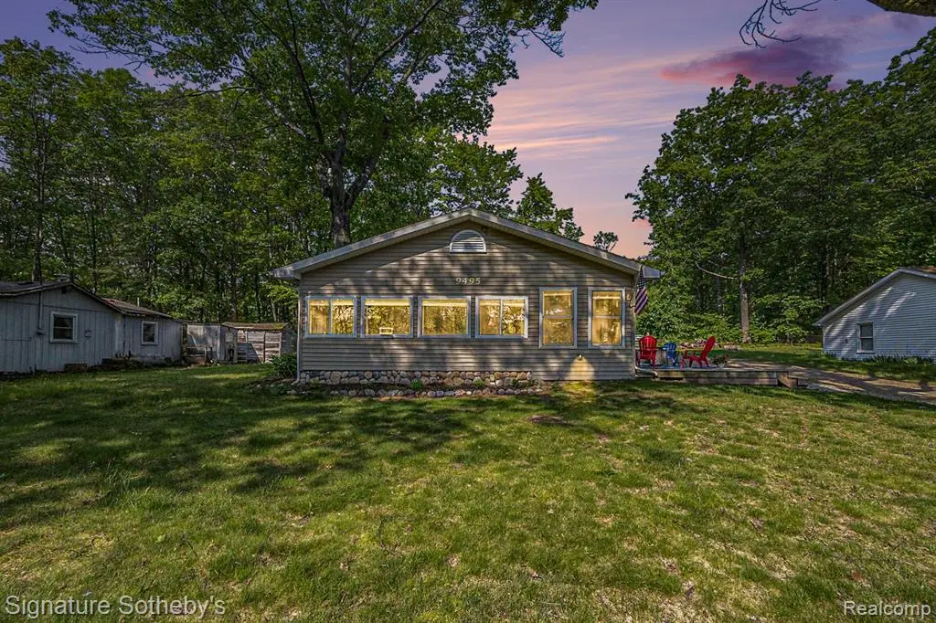 Charming Cottage-Style Home with Canal Views & Canadian Lakes Access. It's totally a Cool Vibe! Discover this beautiful, year-round cottage-style home nestled along a peaceful canal with direct access to the stunning Canadian Lakes. This 3-bedroom, 1-bath retreat combines cozy charm with modern comforts, including an updated kitchen featuring a dishwasher. An extra-large garage provides ample storage for vehicles and recreational gear. Enjoy serene water views from your doorstep, and take advantage of the included water lot, perfect for lakeside relaxation and activities. This darling cabin is not only a perfect personal getaway, but also a proven income-generating short-term rental. Residents gain access to a wealth of amenities including golf courses, a gym, indoor and outdoor swimming pools, fishing (including ice fishing), seasonal community events, and exciting fishing competitions. Whether you're looking for a personal escape or a smart investment, this home has it all.