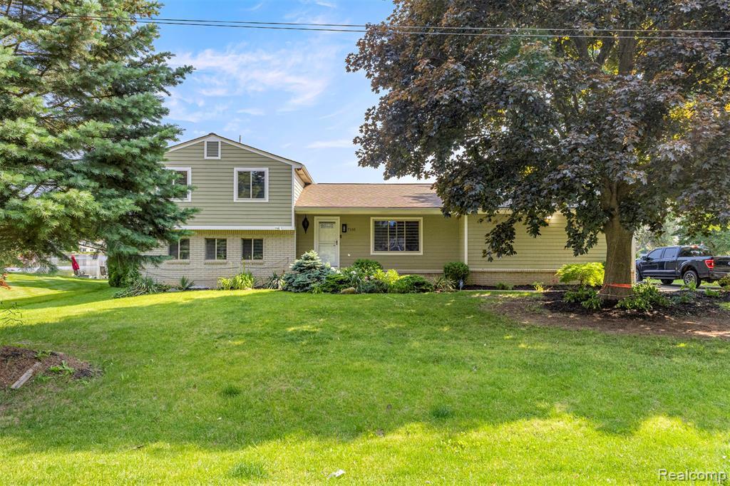 Stunning Lakefront Home on All-Sports Lake Neva! Fully remodeled in 2024, this contemporary split-level sits on the main body of the lake in desirable Lakewood Village Sub with 100 ft. of frontage and panoramic views. Features include an open floor plan, new vinyl wood flooring, recessed lighting, and a gourmet kitchen with quartz countertops, backsplash, custom cabinetry, and stainless steel appliances - including a Samsung induction range. Enjoy lake views from the dining room with a doorwall to a spacious deck and the large family room with fireplace and patio access. The primary suite offers a heated marble bathroom with a custom shower and quartz vanity. The lower level features a second family room with a fireplace, a full bath, a flex room, laundry facilities, and additional storage space. Bonus pet room with dog door to fenced area. Expansive backyard with fire pit and private dock. Move-in ready with a new furnace, water heater, and door walls (all 2024). Neighborhood beach, park, and Brendel Lake access included! All measurements are approximate agent to verify.