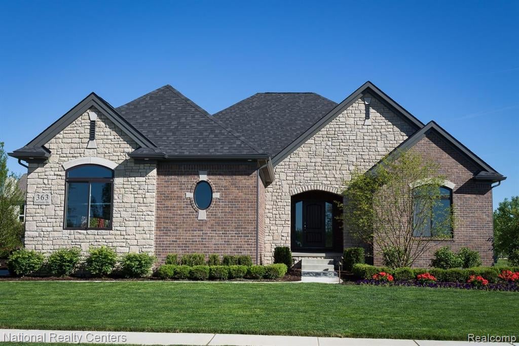 To be built: Welcome to the Jefferson II, a beautifully designed 2286 sq. ft. all brick, maintenance-free ranch located in the sought after Woodland Meadows Community in Chesterfield Township. This spacious open concept home features 3 bedroom's, 2.5 baths (all with ceramic tile) and a versatile formal dining room that can easily be transformed into a home office or den. Soaring cathedral ceilings and abundant windows flood the home with natural light, creating a bright and welcoming atmosphere. The thoughtful split-bedroom layout places the primary suite on one side of the home complete with spa-like bath, dual sinks and walk in closet-while the two additional bedrooms are located on the opposite side, sharing a full bath for enhanced privacy and comfort. The heart of the home is the designer kitchen, which features hardwood flooring, 42" upper cabinets, granite countertops, stainless steel GE appliances, and pantry. Perfect for entertaining or everyday living. Additional highlights: 8'6" deep basement with a 15-year waterproof warranty Energy efficient construction with 96% high efficiency furnace and A/C. 200 AMP electric service, low E vinyl windows, digital thermostat 3 car garage Enjoy the peace of mind building with award winning Clearview Homes, known for quality craftsmanship and energy smart construction. Estimated move-in is approximately 12 months or sooner from signing a purchase agreement. Let's build your dream home:) photos from previously built homes.