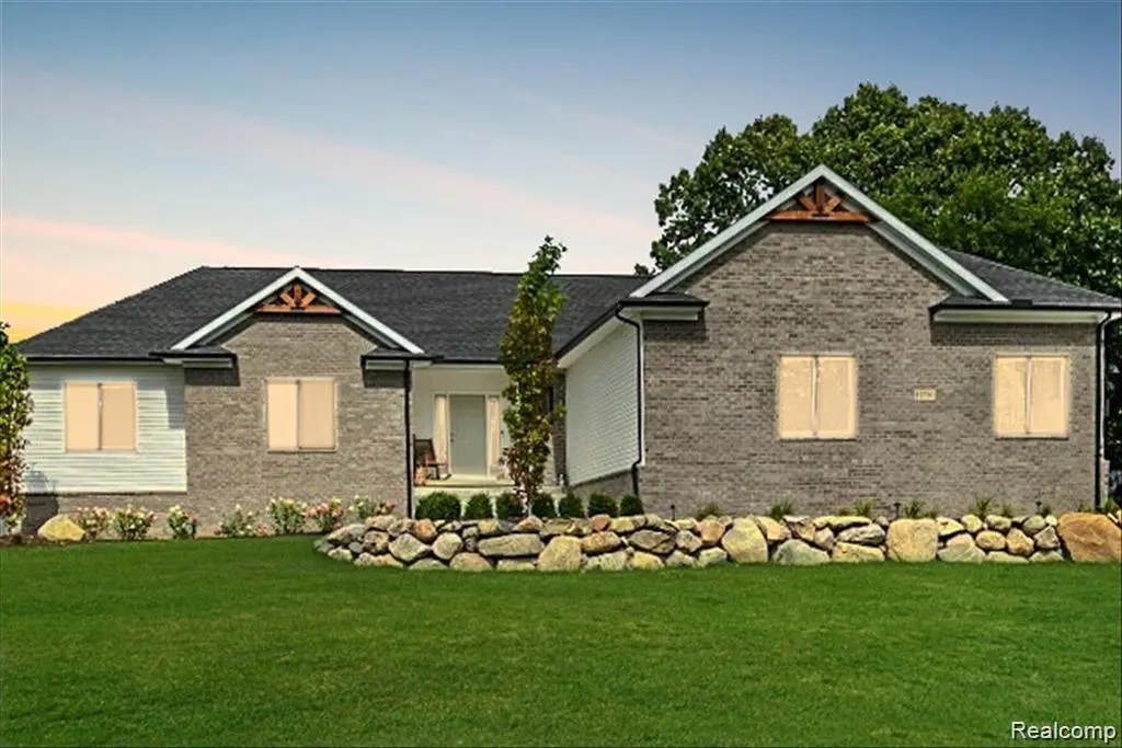 Discover your potential dream home in this stunning ranch-style residence, to be nestled on a picturesque 5.15-acre lot! Experience the tranquility of country living while enjoying easy access to nearby conveniences. Step inside to an inviting open-concept floor plan, highlighted by soaring vaulted ceilings and beautiful hardwood floors that gleam in the natural light. The spacious kitchen is a chef's delight, featuring an island with seating, ample cabinetry, and granite countertops, making it perfect for entertaining or everyday meals. The impressive great room boasts a vaulted ceiling and a cozy fireplace, providing the ideal setting for relaxation and gatherings. With generous room sizes and a sumptuous primary suite complete with a walk-in closet, this home offers comfort and space for everyone. Enjoy the convenience of a first-floor laundry room and the potential of a walkout basement, plumbed for an additional full bath. This highly sought-after property includes a three-car garage, perfect for car enthusiasts or those in need of extra storage. Please note that the listed price does not cover sod, sprinklers, or landscaping, as this beautiful home is to be built with an estimated completion time of 6-7 months from the signed contract. Photos included are of a similar home that contains upgrades not included in the base price. Interior photos have been virtually staged. The buyer will be responsible for transfer tax and the owner's policy. Don't miss your chance to secure this exceptional home - act fast! BATVAI Type 3939 Hagerman, Leonard, MI in navigation to find property. You may park in driveway at 3939 and walk over to the land with an appointment.