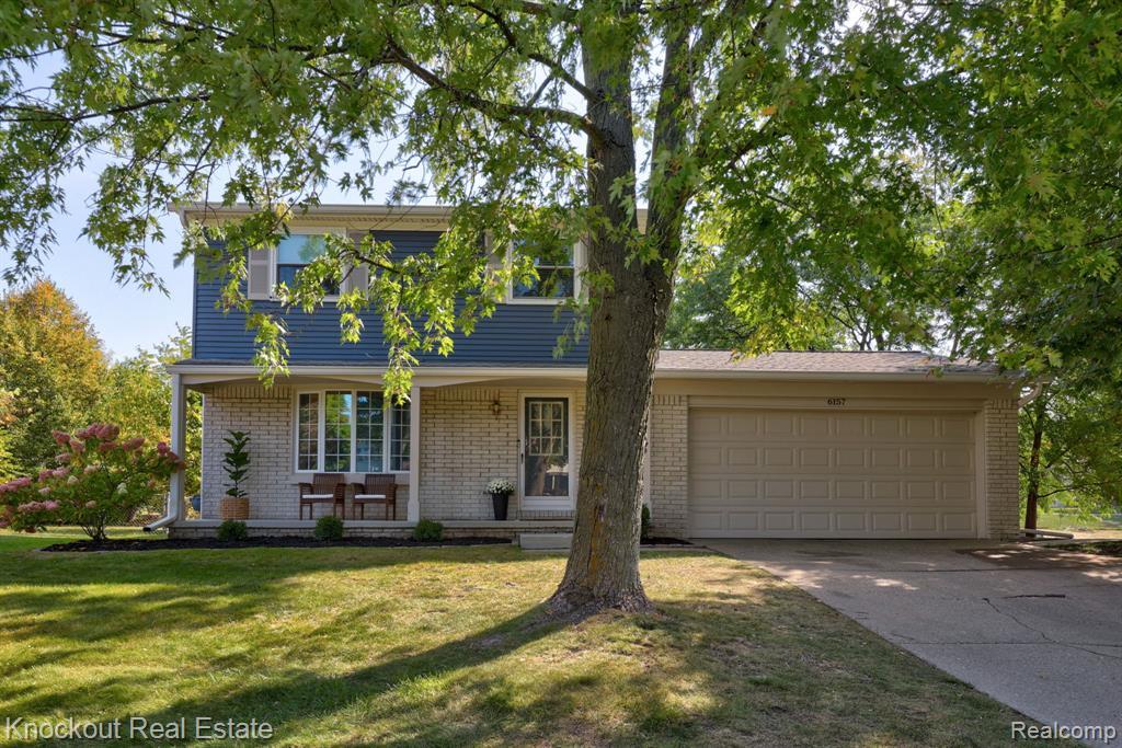 Come on down… and imagine life on Barker Circle in Campbellgate Farms, where charm meets comfort in this dog-gone delightful colonial! Nestled at the end of a quiet cul-de-sac, this 1,700 sq ft home boldly wears its navy-blue coat, inviting you in from the moment you arrive. Less than 10 minutes from I-75, downtown Clarkston, and the serene Pontiac Lake Recreation Area - and just a short stroll to Stepanski Elementary - location here feels like a hidden treasure. Step inside and the comfort of knotty pine LVP flowing throughout the main level and neutral paint into the living room framed by a custom electric fireplace and a sunny bay window. The open kitchen and family room are the heart of the home, perfect for entertaining friends or hosting weekend brunches. Bar seating, warm shaker cabinets, with pull out shelves, pantry cabinet, hints of mid-century modern charm in the mosaic glass tile, and granite counters create a space that's both functional and stylish. Light pours into the huge family room through expansive windows, highlighting a shiplap-wrapped gas fireplace and the sliding doors that lead to a patio overlooking a backyard that feels even bigger thanks to the adjoining city green space - a natural stage for summer barbecues or quiet morning coffee. Upstairs, the primary suite is a serene retreat, featuring a custom wall wardrobe and second closet with functional organizer system. Two additional bedrooms with laminate floors and generous closets ensure comfort for family or guests, while the updated full bath adds a touch of modern convenience. Updates include: AC ('17), septic pumped ('23), roof (16 years), mostly new Anderson windows ('20/'23), commercial-grade seamless gutters ('23), Trane furnace, and ducts cleaned ('24). The partially finished basement offers endless possibilities - an office, guest area, or playroom - while the finished, heated, and insulated garage doubles as the perfect workshop or hobby haven. Hurry before this beauty becomes a showcase showdown!