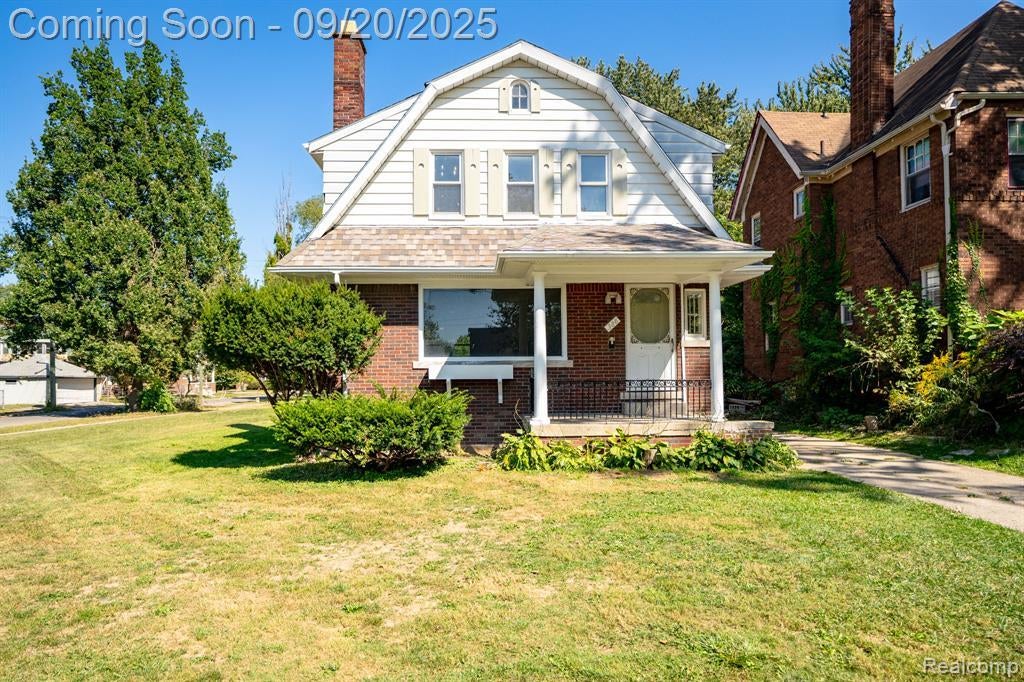 Welcome to this beautifully maintained 4-bedroom, 2-bath Dutch Colonial, offering over 2,000 square feet of finished living space. Built in 1924, this home blends timeless character with thoughtful modern updates. The inviting living room features hardwood-style flooring, crown molding, recessed lighting, and a cozy fireplace. The updated kitchen boasts newer cabinetry, stainless steel appliances, stone countertops, and abundant natural light. Upstairs, you'll find spacious bedrooms with vaulted ceilings and updated baths with tile finishes and modern vanities. The finished basement extends your living space with recessed lighting, perfect for a family room, office, or recreation area. Outdoor living is just as enjoyable with a charming covered front porch and a large backyard, ideal for entertaining. This home also includes a 4-panel solar tree generating approximately 1,400 watts of energy. Situated just three blocks from the recently renovated Alfred Brush Ford Park and the Fox Creek Canals, this Detroit gem is also minutes from Windmill Point Lighthouse, Riverfront-Lakewood East Park, schools, shopping, and major roadways. Move-in ready and full of charm - schedule your showing today!