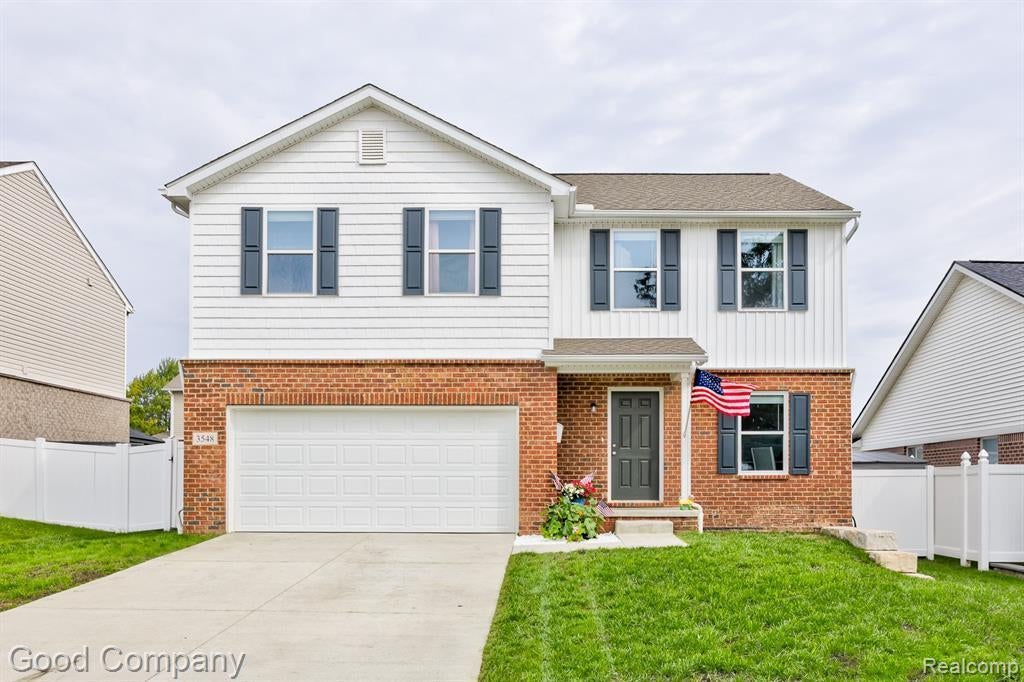 Matterport virtual walkthrough available on Homes. Beautiful two-story home in Brooke's Meadow featuring spacious modern living, stylish upgrades, and a fully fenced backyard perfect for play and entertaining. Step inside to find a dedicated home office with a custom-built two-sided desk, followed by an open-concept main floor with brand new flooring throughout. The bright and inviting living room flows into a generous dining area and a stunning kitchen with granite countertops, stainless steel appliances, and ample cabinetry. A convenient half bath completes the main level. Upstairs, you'll find four spacious bedrooms, a second-floor laundry room, and two full baths, including a private primary suite with dual vanity sinks and a walk-in closet. The full basement with an egress window is ready for your finishing touch, whether for a gym, rec room, or additional living space. Out back, enjoy a fully fenced yard with a patio and fun sand play area, plus an attached two-car garage. Welcome Home!