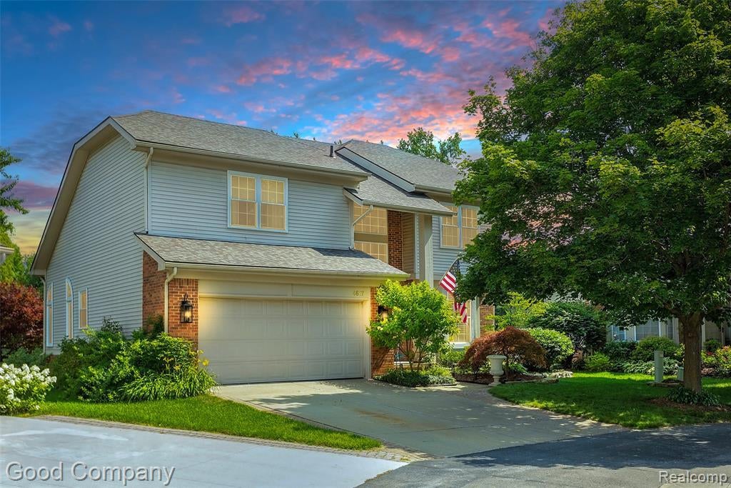 HOA fee includes homeowners insurance, new roof (4 years), new HVAC (5 years). Matterport virtual walkthrough available on Homes. This is the one! Stunning brick colonial in a quiet cul-de-sac backing up to a park-like setting. As you enter the home, a two story foyer welcomes you in grand style to the formal living and dining room. The back of the house has a vaulted ceiling in the great room with picture windows and a grand fireplace ready for cozy holiday gatherings. Huge eat-in kitchen with doorwall to an entertainment-ready back deck. First floor laundry conveniently located nearby. Upstairs find a huge primary suite and two additional generously sized bedrooms. Lower level boasts more entertaining space with large rec room featuring slate tile floor, fireplace and beautiful Cherry wet bar. The backyard is a stunner...longtime owners have poured into the space, and in addition to the deck and patio, (gazebo stays!) there are blooming perennials and a lovely variety of trees dotting the property. The focal point is the wetlands that will have you reaching for your binoculars to admire the various birds and wildlife. This home is one of a kind! Welcome home.