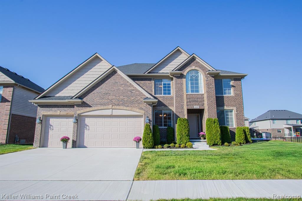 Beautiful home, great location, thoughtful design, practically new! This gently used newer construction home is stunning inside and out. Solid brick exterior with covered porch and patio. Gleaming hardwoods throughout the first floor, where a study with French doors, great room with soaring 2 story ceiling, and gorgeous kitchen with marble counters and backsplash, stainless appliances, pantry and a huge island, plus a breakfast nook and formal dining room! First floor laundry with built-ins and a sink. Heading upstairs, you will find a beautiful master suite, with a huge WIC, luxurious walk-in shower, deep bath and double vanity. The second floor features another bedroom with ensuite, and two more bedrooms with a dual entry bath! 3.5 car garage and full unfinished insulated basement with egress offer more room for storage and your design ideas. Yard is 3/4 fenced and has inground sprinkler system to keep your lawn fresh. With shopping, restaurants, parks and the recreation center nearby, you have it all!