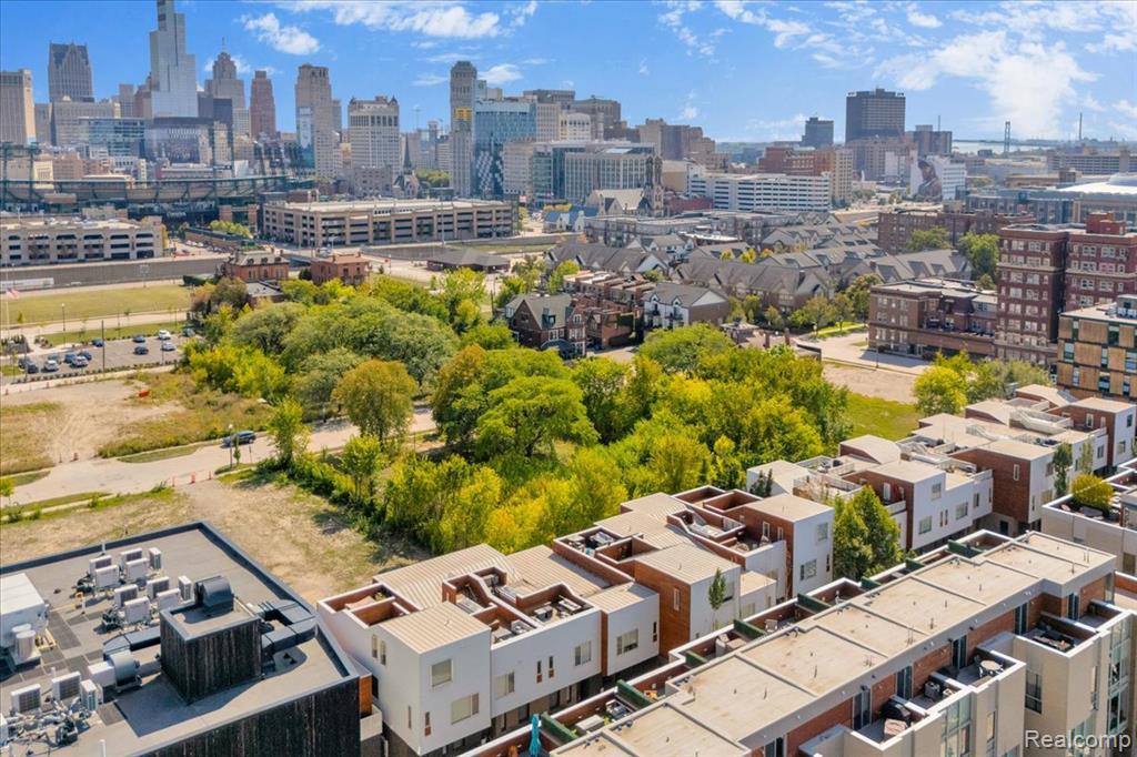 Embrace a cosmopolitan, urban-chic lifestyle in the coveted City Modern neighborhood of Brush Park with city views of Downtown! Perfectly poised in the southern end of the neighborhood with incredible views of the city - this striking newer construction condo offers nearly 1,500 square feet of finished living space, designed with dramatic ceilings, streaming natural light, and gleaming hardwood floors that balance style with comfort. A dream kitchen showcases modern cabinetry topped with granite countertops and paired with stainless steel appliances: worthy of a five-star rating. Two spacious bedrooms and two stylish baths are wrapped in designer-chosen ceramic tile and low-maintenance finishes for everyday ease. Additional highlights include California Closet systems and storage throughout, a one-car attached garage (plus secure outdoor parking available for an extra fee), beautifully landscaped neighborhood greenspace, and 24-hour private neighborhood security. Just steps from Detroit favorites like Grey Ghost, Second Best, Bar Pigalle, and Lena to name a few, this location makes city living effortless. Just minutes to Eastern Market, Wayne State, College for Creative Studies, DMC Hospital, and more. Quick access to I-75, M-10, M-1, and all major thoroughfares.