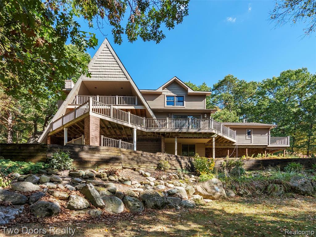 5 Bedroom GORGEOUS PRIVATE 3.9 acres with Stunning views and a Large GOURMET Kitchen with never-ending storage. UPDATES: 2025 Luxury vinyl in 3 bathrooms and 1 bedroom. 2024 Microwave. 2023 Washer, Dryer. 2021 TANKLESS Hot water heater, well pump, iron filter, dishwasher, refrigerator and water softener. 2019 Furnace. This Stunning, well-maintained property has a walk around porch perfect for entertaining. Two fireplaces, first floor laundry and a built-in wet bar off the spacious living room. Not only a two-car attached garage, but there is also a detached garage, shed and barn all w/ electricity. You can store up to 6 cars, storage for toys or your favorite animals. YOU HAVE TO SEE THIS HOME IN PERSON!!