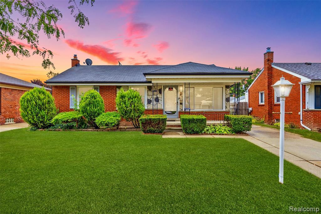 Welcome to 28805 Groveland St - a solid brick ranch offering 3 bedrooms, 2 full baths, and a fully finished basement that nearly doubles your living space. With 945 sq. ft. above grade and 925 sq. ft. below, this home delivers the strong bones, thoughtful design, and curb appeal that make Roseville living special. Step inside to a sun-filled living room anchored by a large picture window and classic stone accent wall. Original hardwood floors flow throughout the main level, adding timeless warmth. The spacious eat-in kitchen features custom oak cabinetry, abundant counter space, a built-in hutch, and a bright bay window overlooking the professionally landscaped yard. Downstairs, the retro-inspired finished basement is a time capsule of mid-century charm - complete with a vintage bar, second full bath, laundry area, and workshop. It's ideal for entertaining, hobbies, or extra storage. Outside, enjoy a fenced backyard, front and rear lamp posts for evening ambiance, and an oversized 22-foot-deep two-car garage offering space for tools or toys. The wide front easement sets the home farther from the street, giving extra privacy and a stately presence. Located just a five-minute walk to Fountain Elementary and Lions Park, and minutes from shopping, dining, and I-94, this property combines practicality and potential. Immediate occupancy available - bring your vision and be settled before Thanksgiving!
