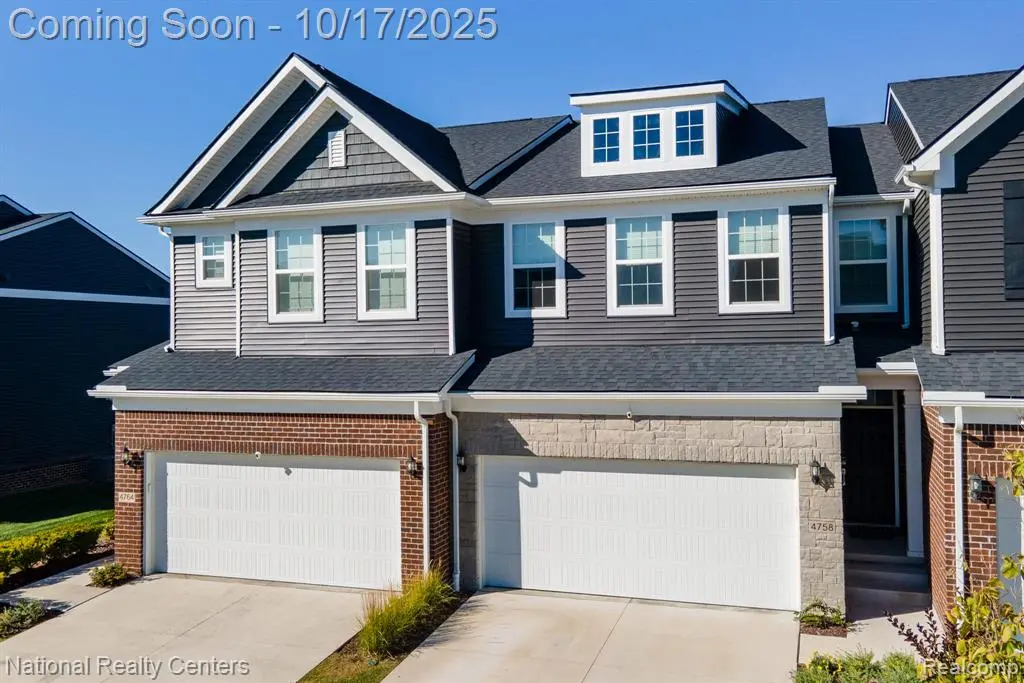 Welcome to this newer construction townhome, offering maintenance-free living in a prime location. This home features four spacious bedrooms and three and a half baths and blends modern style with everyday comfort. The open main level showcases large windows and high ceilings offering an airy, light-filled layout, highlighted by a stunning kitchen with white cabinetry, quartz countertops, and an oversized island perfect for gathering and entertaining. The primary suite includes a walk-in tiled shower, dual vanities with quartz counters and a large walk in closet. Two additional bedrooms, an additional full bath and the conveniently located laundry room finish off the top floor. The fully finished lower level provides additional living space with the fourth bedroom and full bath - ideal for guests, or perfectly suited as a private office or home gym. Additional features include an attached two-car garage, all appliances included, and ample storage throughout. Ideally located near I-75, shopping, dining, and Great Lakes Crossing Mall, this home also offers access to award-winning Lake Orion schools. A perfect combination of convenience, comfort, and contemporary living.