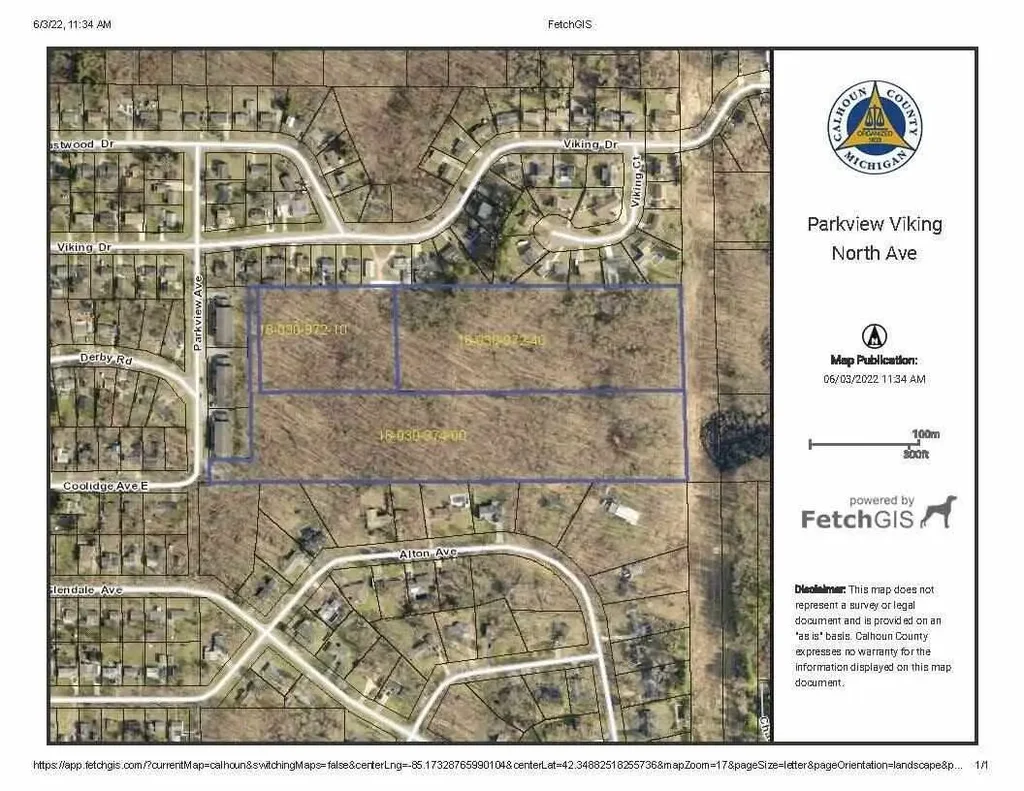 2 lots being sold together. 14+ acres. They are only accessible if you use the parcel off the corner of Parkview & Coolidge Ave E. These lots are available through the Calhoun County Land Bank's Develop This Lot program. This program helps interested buyers in the purchase and development process to transform vacant land for housing, commercial, industrial or mixed use projects. Buyer responsible for checking with local municipalities for building requirements. All info is believed to be accurate, it is up to the buyer to verify all info.