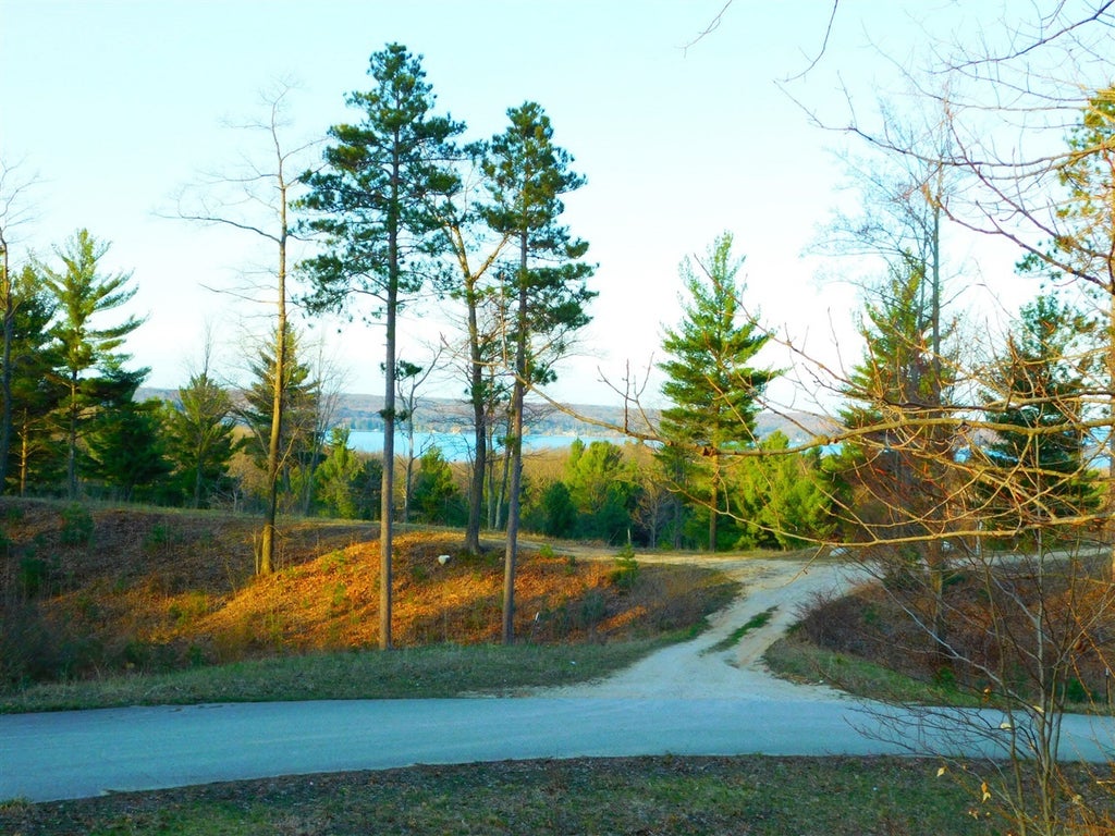 A beautiful place to build, with sweeping views of Portage Lake and Lake Michigan from the summit of this hilltop lot in Onekama Michigan. Over 2 acres of rolling, wooded terrain on a private road with frontage also on scenic M22. Choice building sites will be enhanced by the removal of the smaller trees that has been scheduled to begin this spring. From this location you will be minutes away from several beaches, marinas, walking trails, restaurants, golf courses, and a life in Up North Michigan that will surpass your wildest dreams.