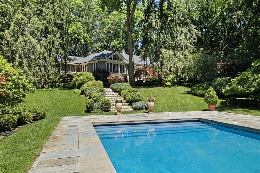 Designed by architect Marvin Herman as his personal residence, this 6 bedroom, 5.5 bath home is located on 10 private acres in the rolling countryside in the much sought after 1000N corridor. Luxurious custom details throughout and the highest quality building materials and workmanship featuring vaulted ceilings, oversized French doors leading to many decks and patios, deep moldings, beautiful lighting fixtures and hardware, and luxurious large scale rooms perfect for entertaining all enhance this unique home placed strategically in the midst of mature & exquisite landscaping. Amenities include a spacious 30x27 living room allowing for multiple conversation areas, main floor primary bedroom suite with attached library/sitting room, custom kitchen with Viking & SubZero appliances and