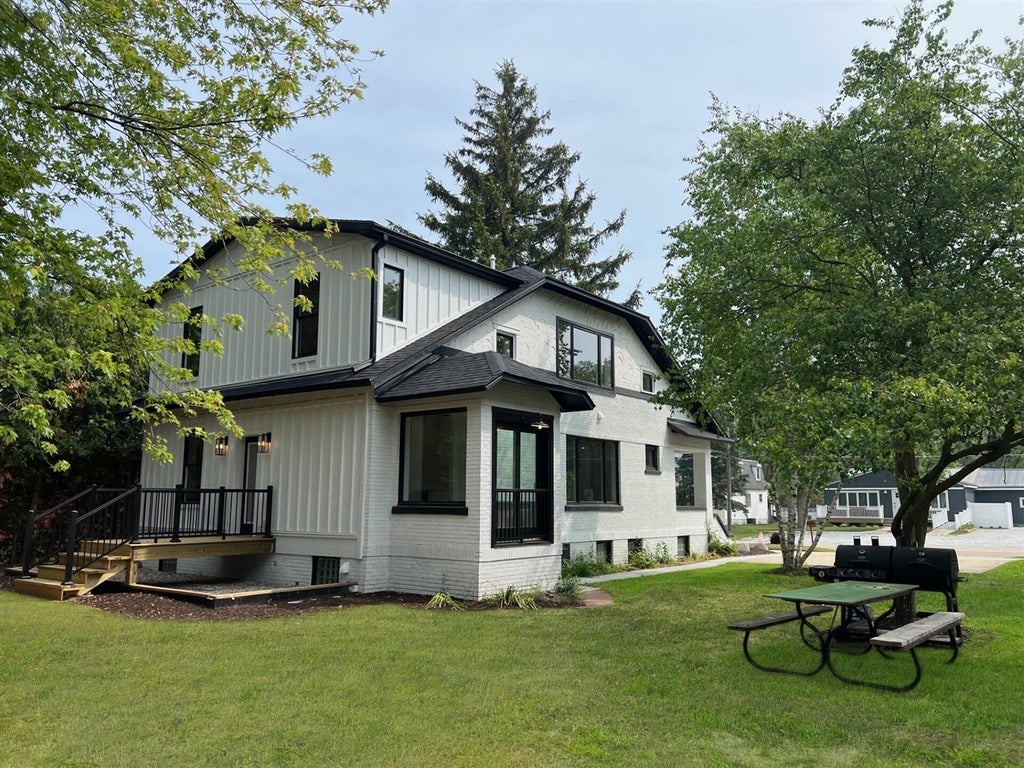 Whether you're looking for your forever dream home, a weekend getaway, or an investment opportunity, this property is located in the General Commercial District and offers it all! This home has been beautifully transformed into a 4-bedroom, 3-bath home offering a perfect blend of modern design and functional living. The open-concept and large windows bring in natural light. Highlights on the main floor include the exquisite details throughout featuring a striking coffered ceiling in the dining room, tray ceiling in the living room and beautiful quartz countertops. The custom stairway offers a sleek steel wire railing system to add a contemporary touch. The finished lower level is an entertainer's delight complete with a spacious rec room and an area for a game room. Add a fire pit to the backyard and cozy up for relaxing and hosting guests. Located 1 block from the heart of downtown New Buffalo. Enjoy the charming shopping district, restaurants, and easy access to Lake Michigan and